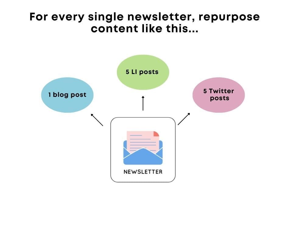 Every newsletter you write should be repurposed into 5+ social media posts on 1-2 platforms.