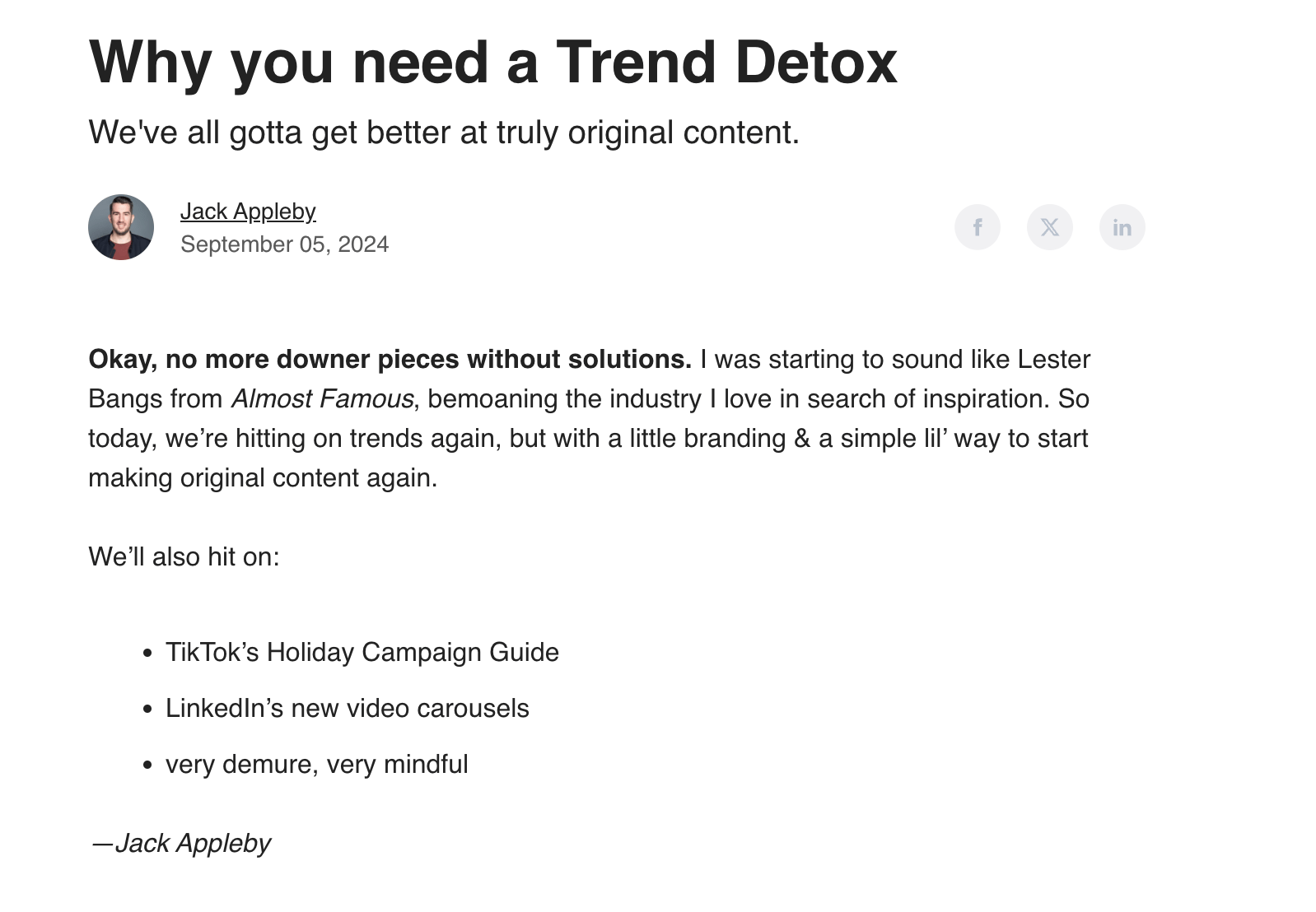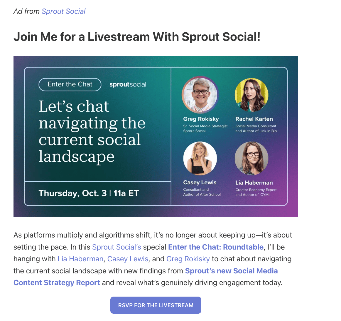 Post-CTA’s tell people about your newsletter content after it was posted. Here’s an example below: