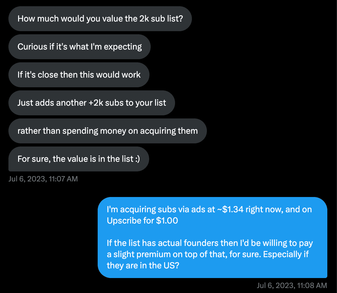 I quickly confirmed that I wouldn’t be interested in running a second newsletter myself right now. So the conversation turned to the value of the email list.