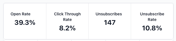 I hoped engagement would match my overall list engagement (60% open rate, 12% CTR) but it did not.