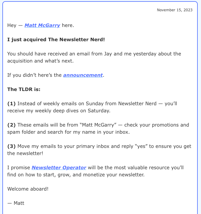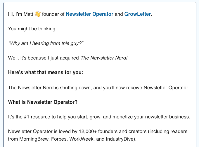 It was a simple transition but those 5 steps were key to informing Newsletter Nerd subscribers about what was happening.