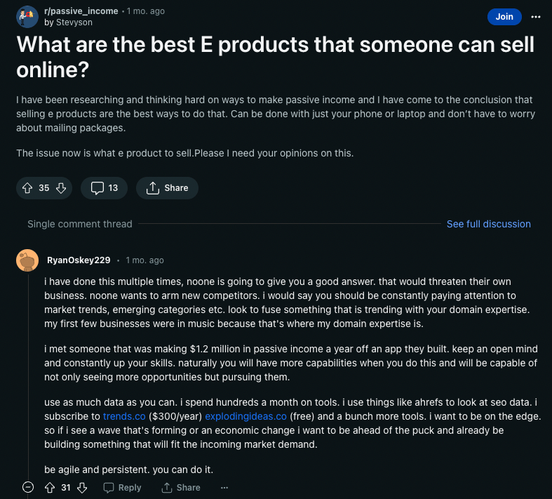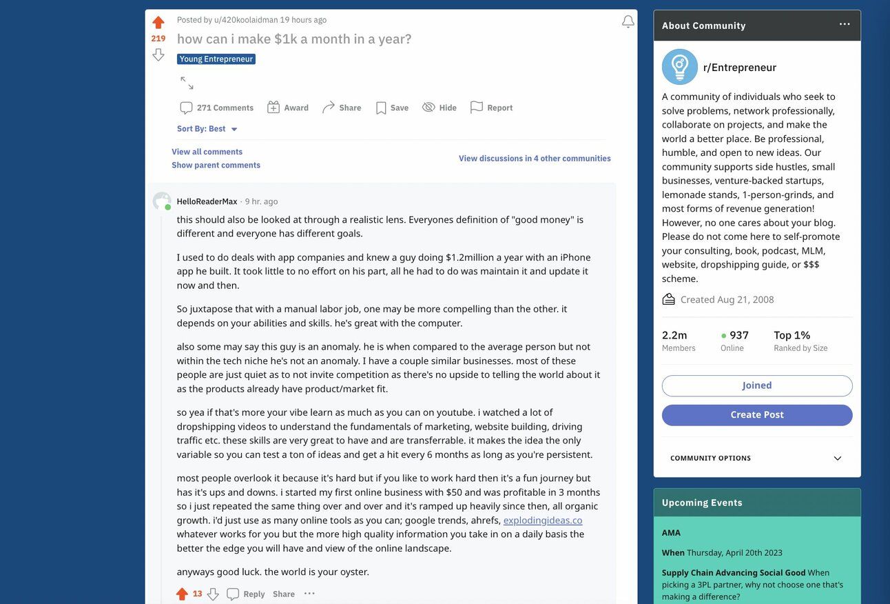 The post was trending and #1 in the r/entrepreneur subreddit. I decided to latch on to the momentum and attention the post was getting by engaging in the conversation.