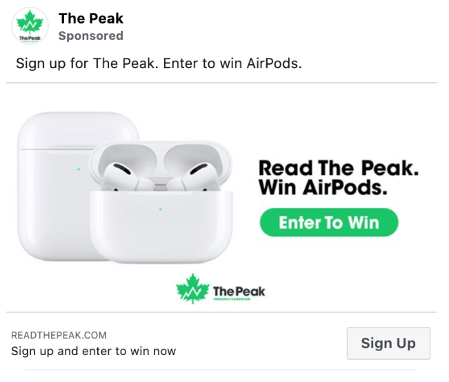 Paid ads are still a big part of The Peak’s growth strategy. However, they have since moved away from using giveaways in their Facebook ad campaigns.
