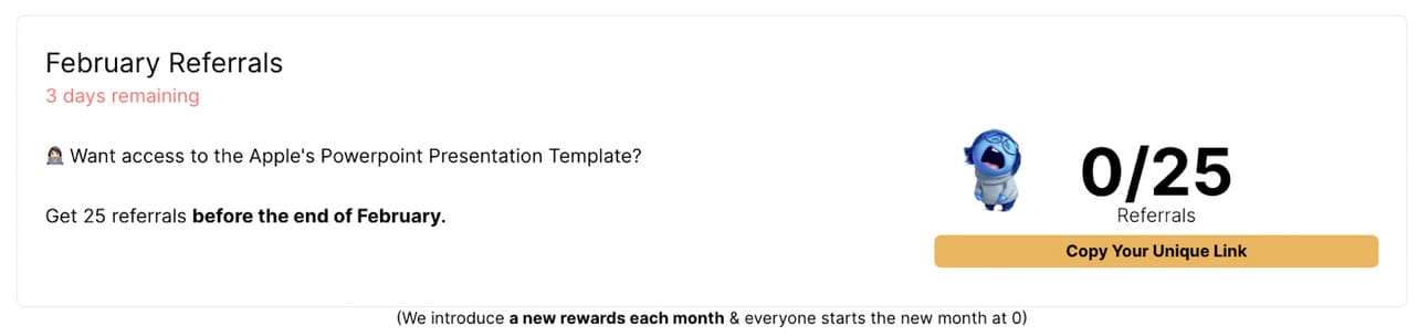 In the early days of his newsletter, he used a typical referral program based on multiple milestones.